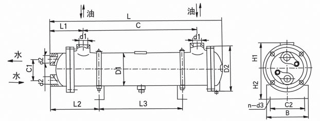GL冷卻器體積小,重量輕、冷卻效果好,便于維護檢修;GLCQ 型的換熱管采用紫銅翅片管,熱交換系數(shù)>300kcal/m2·h·℃;GLLQ型采用裸(光)管,冷卻器熱交換系數(shù)>200kcal/m2·h·℃。GLCA冷卻器型與GLC冷卻器型外形尺寸相同,油、水口有螺紋和法蘭兩種。